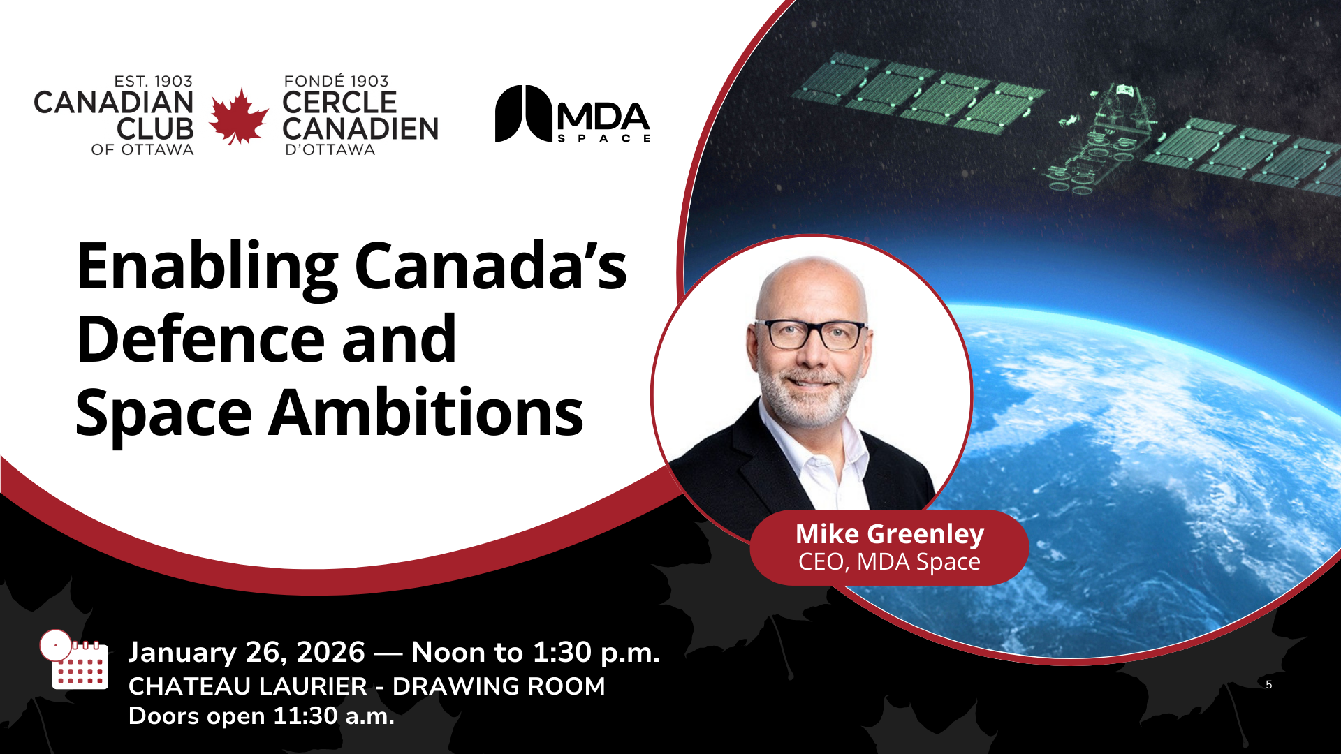 Join us on January 26th 2026 for a conversation with Mike Greenley, CEO of MDA Space.
