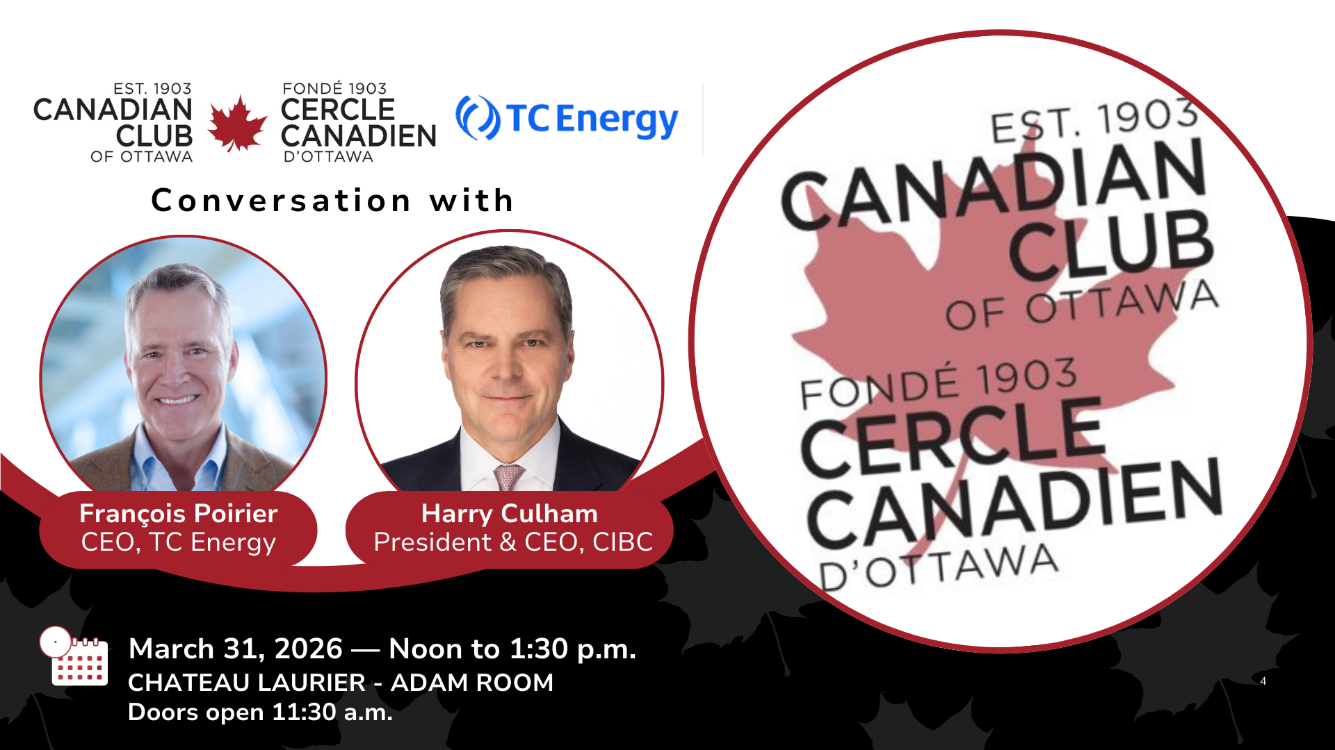 Join us for a special luncheon featuring a keynote address by François Poirier, President and CEO of TC Energy, followed by a fireside chat with and Harry Culham, President and CEO of CIBC.