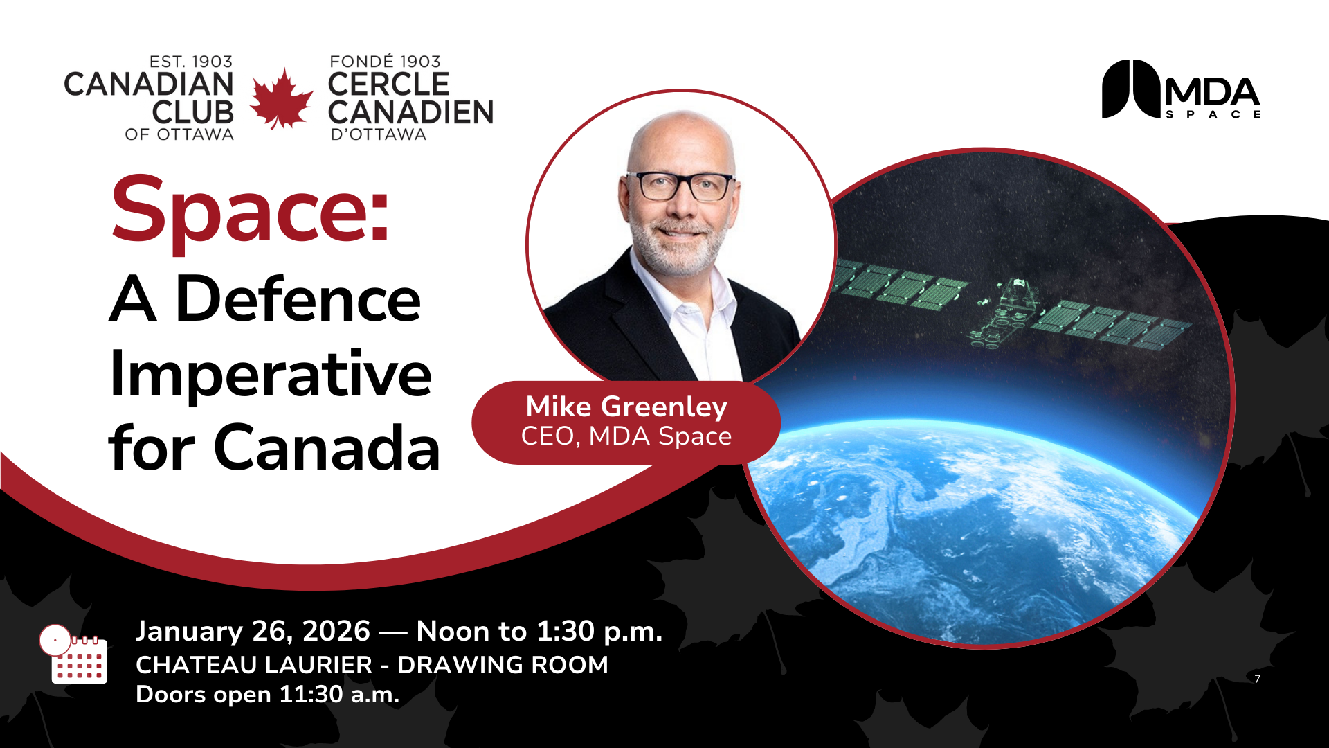 Join us on January 26th 2026 for a conversation with Mike Greenley, CEO of MDA Space.